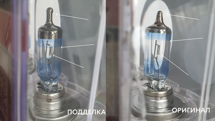 Например, при установке поддельных автоламп многократно увеличивается риск ДТП в темное время суток. Лампы, изготовленные кустарным способом, не обеспечивают расчетного распределения света, что повышает вероятность аварийных ситуаций. Из-за нарушения технологии нить накала размещается некорректно, что ведет либо к ослеплению встречной полосы, либо к недостаточной освещенности дороги перед автомобилем.